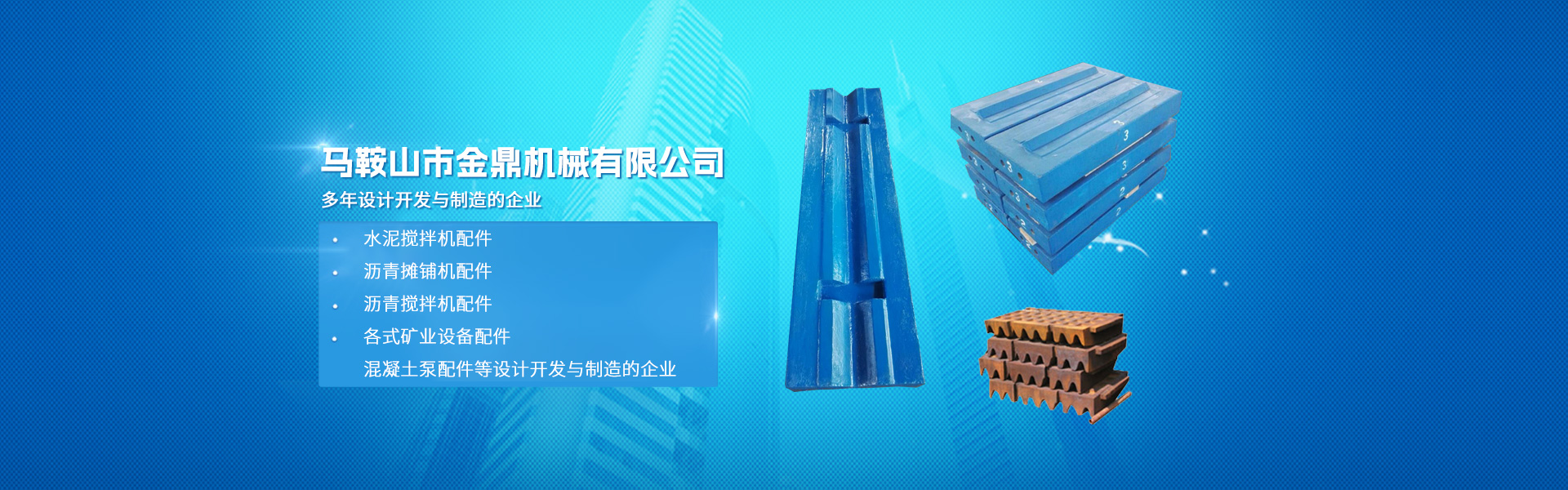 ?  馬鞍山市金鼎機械有限公司位于安徽省馬鞍山市當涂縣博望鎮經濟開發區,占地總面積近百畝,是專業從事水泥攪拌機配件、瀝青攤鋪機配件、瀝青攪拌機配件、各式礦業設備配件、混凝土泵配件等設計開發與制造的企業。